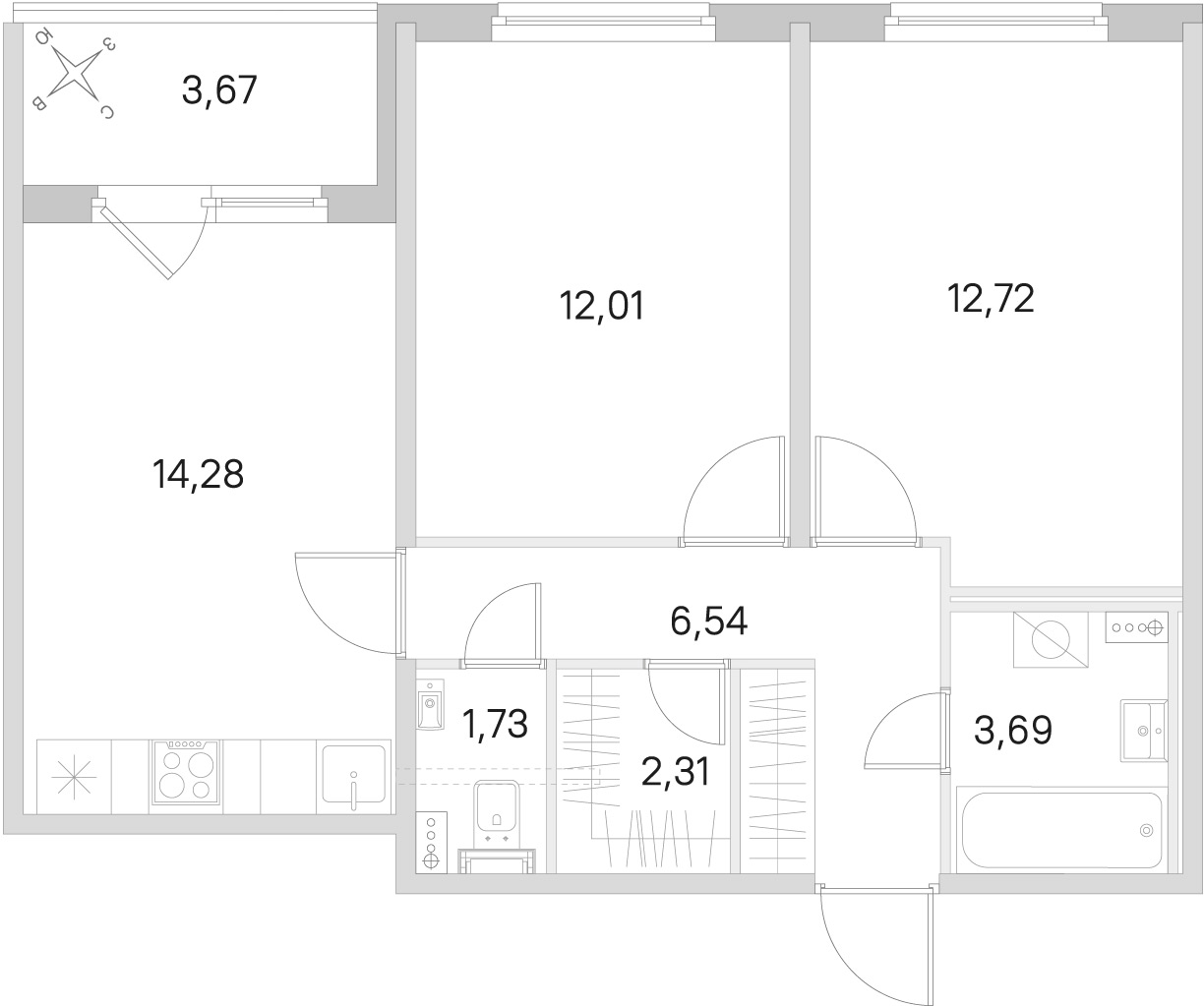 2х-комнатная квартира, 55.12 м2 в ЖК "Любоград"