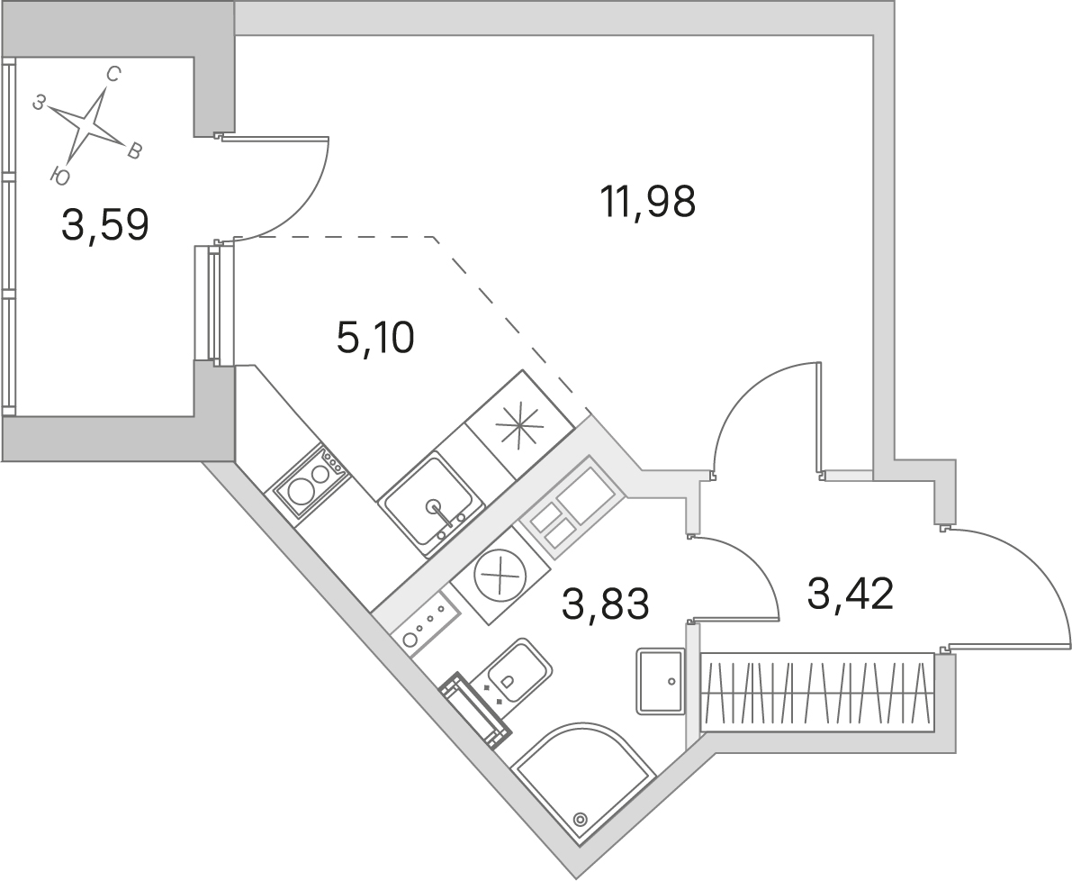 Квартира-студия, 26.13 м2 в ЖК "Любоград"