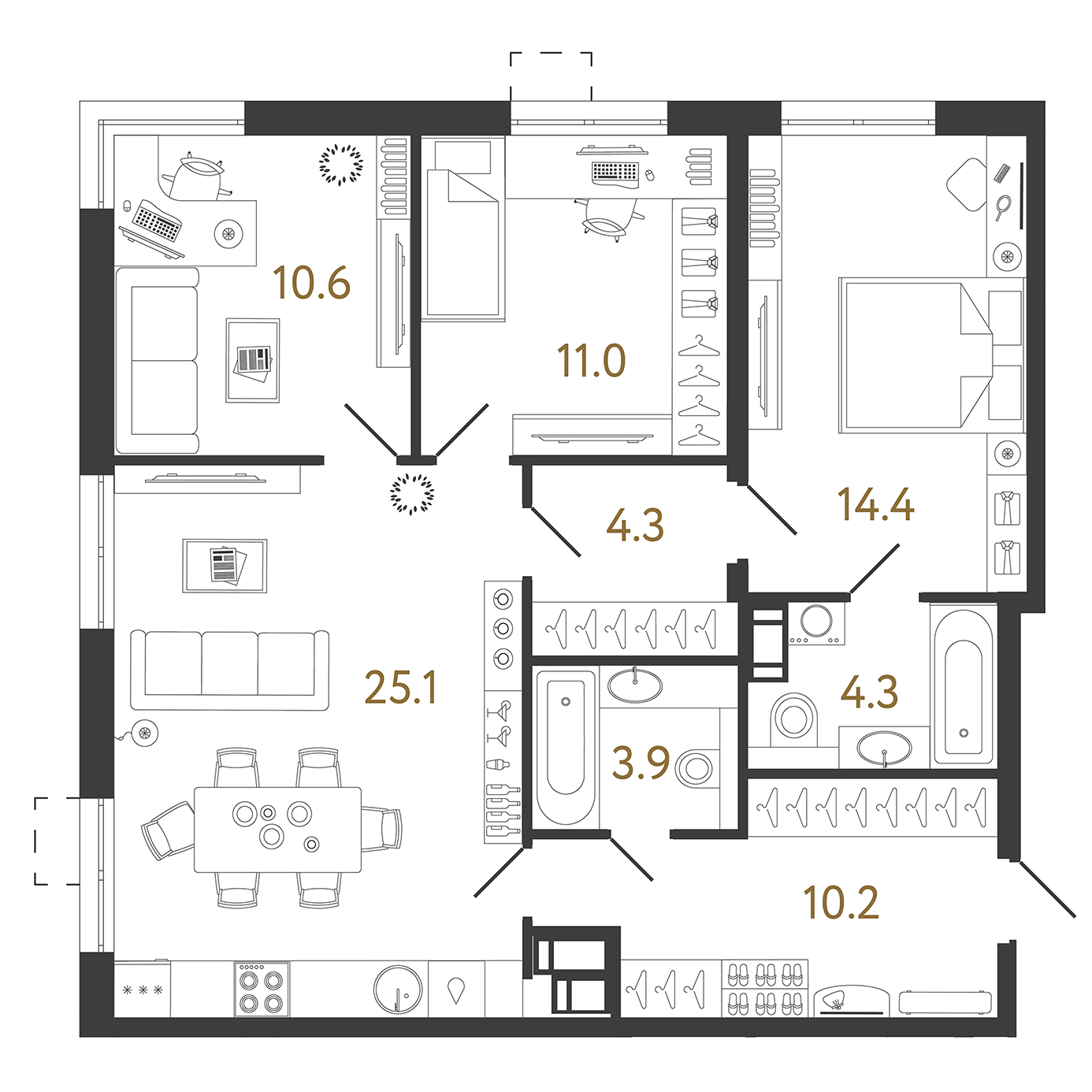 Продается 3х-комнатная квартира 83.8 м², площадь кухни 25.1 м². в ЖК Струны стоимостью 26 981 086 рублей. Квартира находится по адресу ул. Шостаковича, д. 1 недалеко от метро Проспект Просвещения в районе Выборгский. Данная квартира находится на 7 этаже 23 этажного монолитного дома. Из общей 83.8 м², площадь кухни 25.1 м² к жилой относится 36м² , в квартире 3 комнаты. В нашем каталоге вы сможете найти и другие 3 комнатные квартиры в ЖК Струны со сроком сдачи IV квартал 2026. от 12 450 802 рублей на нашем портале!